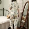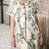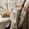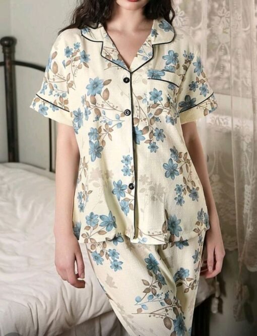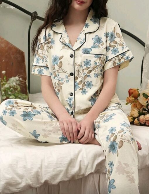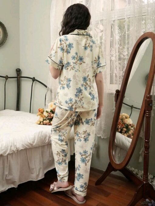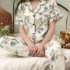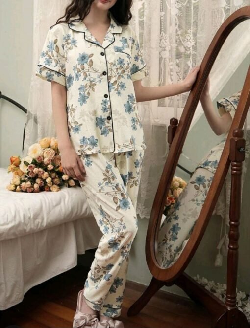 بجامة نسائية مكونة من قميص وبنطلون بطبعات ورد