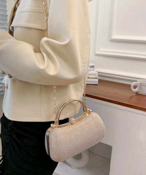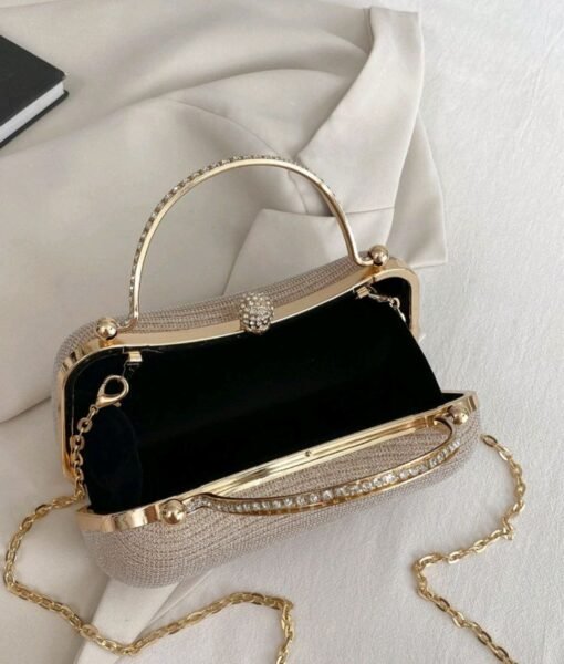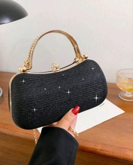 حقيبة سهرة يدويه مزينه بالترتر والخرز مع حزام لامعه مناسبه للحفلات والسهره
