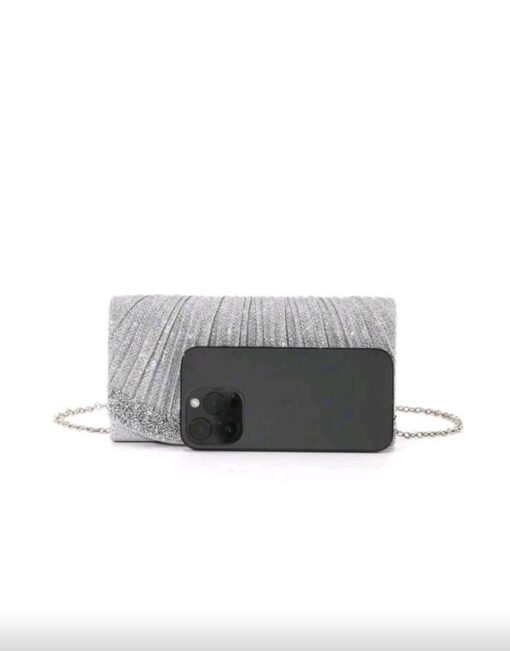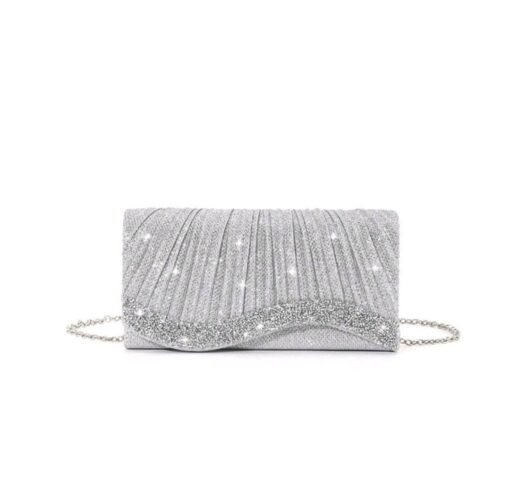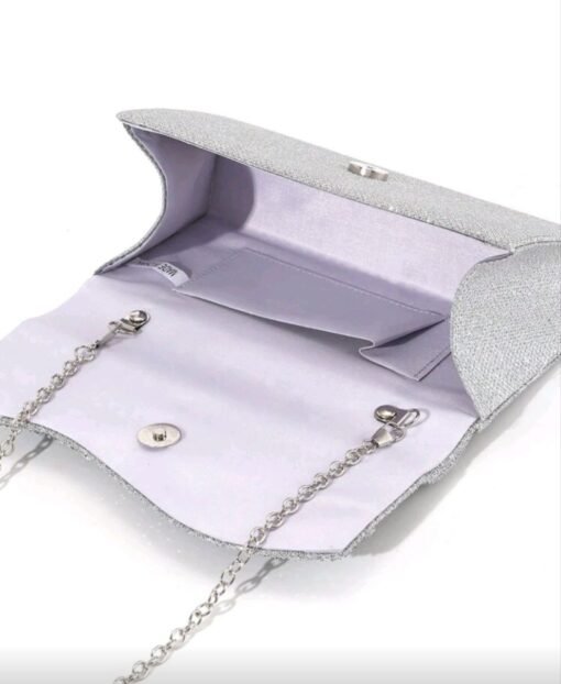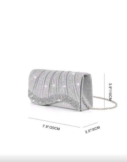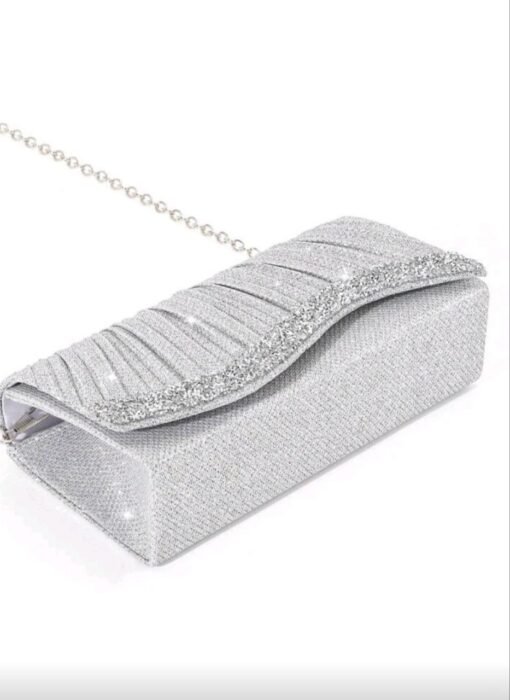 حقيبة يد نسائية سهرة فضية مستطيلة الشكل لامعة مناسبة للحفلات والمناسبات
