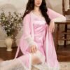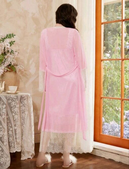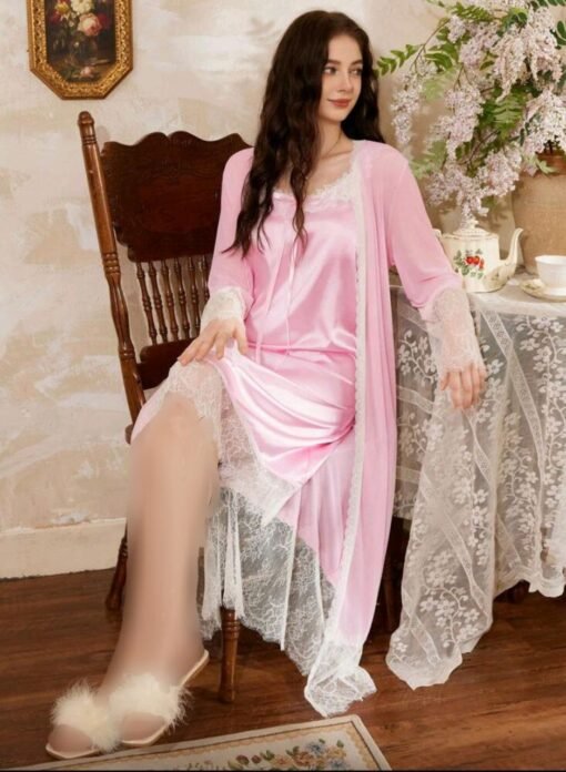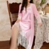 روب نوم تل ناعم مزين بدانتيل مع فستان ستان ناعم مزن بالدانتيل