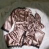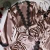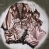 طقم بجامة نوم ستان مزين بالدانتيل الاسود