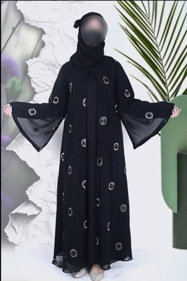 عيايه مطرزه شيفون قطعتين مع طرحه