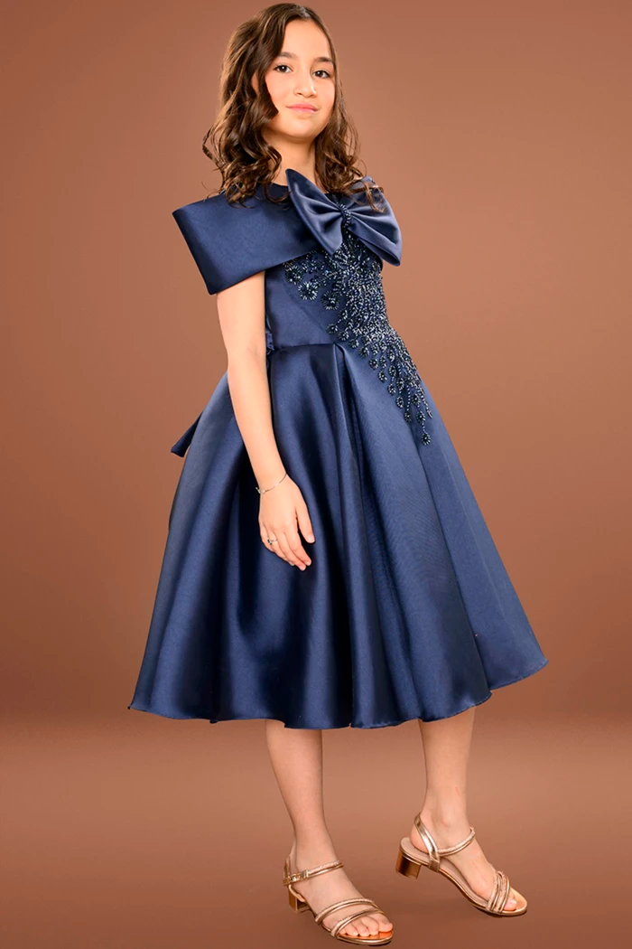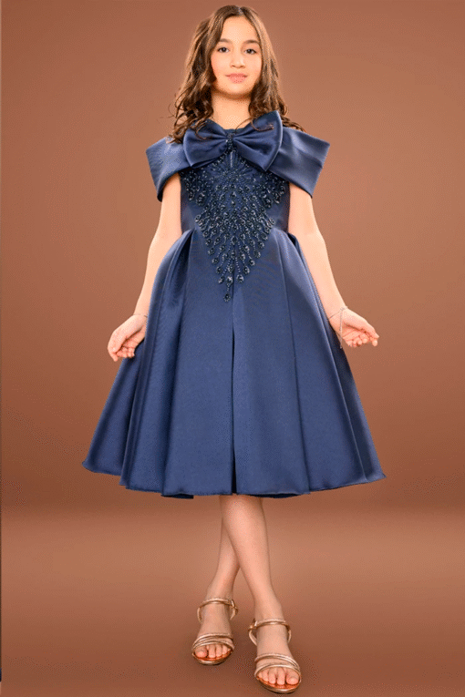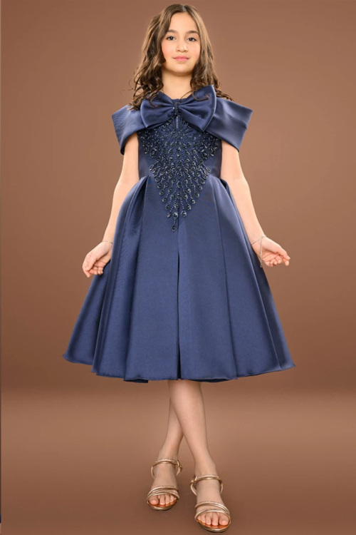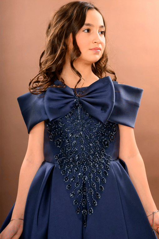 فستان سهرة بناتي نيلي بتطريز فاخر