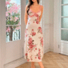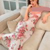 فستان نوم طويل باربطة رفيعه وطبعات زهريه