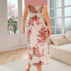 فستان نوم طويل باربطة رفيعه وطبعات زهريه وتدخيلة على الصدر دانتيل