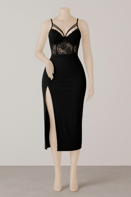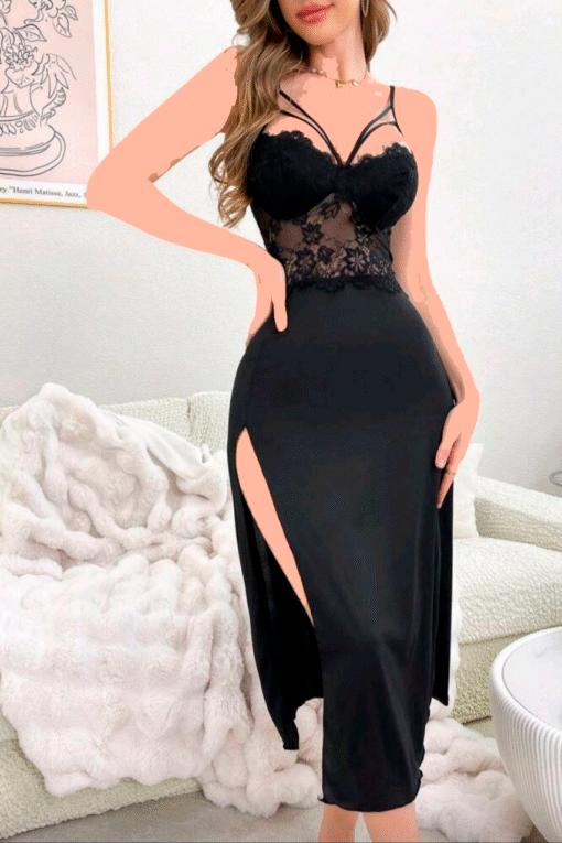 فستان نوم نسائي مزين بالدانتيل بتصميمات متقطعه
