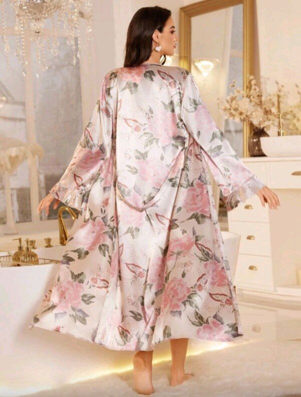 قميص نوم مع روب ستان بطبعات ورد انيق وناعم